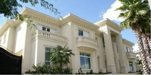 Die Villa befindet sich an bester Lage Lauro de Freitas, die bebaute Gesamtfläche ist 600 m2. Die Grundstücksgrösse ist 1'475 m2. Die Villa hat 5 grosse Suiten (1 im Erdgeschoss), alle mit Balkon und Schränken und Klimaanlage, die Master Suite misst 53m² mit Bad mit doppeltem Waschbecken aus rosafarbenem Marmor, Hydromassage und einem Balkon mit Blick auf den Swimmingpool und die Gärten. Im Obergeschoss hat es 3 große Zimmer mit Bad, Heimkino mit Audio-TV.